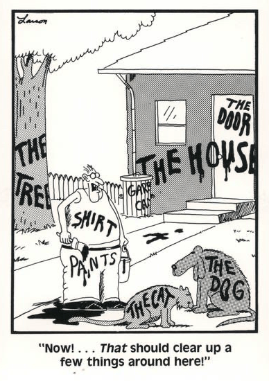 (The idea that the Oval Office ought to be explicitly labeled “The Oval Office” — whatever the typeface or signage style — brings to mind this classic Far Side cartoon, which I think aptly illustrates the president’s mental faculties.)